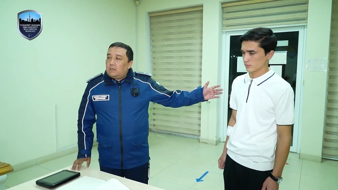 Инспектор профилактики и Мухриддин. Фото: ГУВД Ташкента.