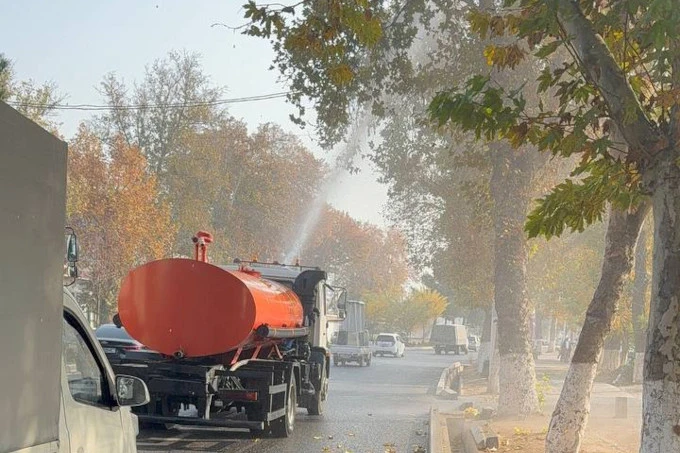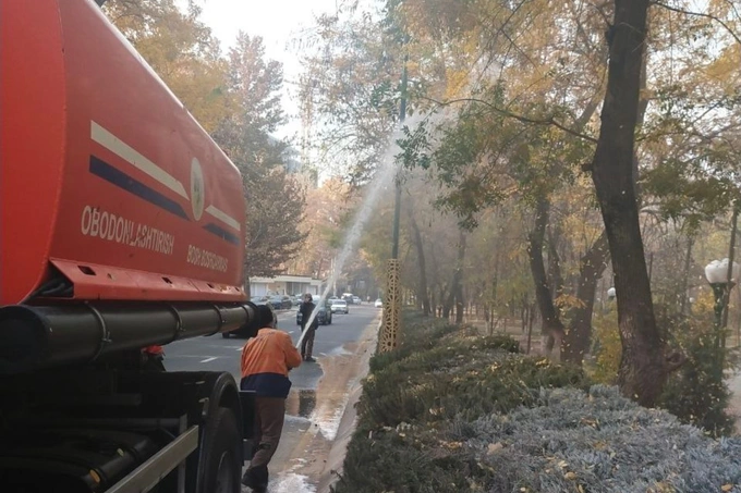 Хокимият Ташкента и Главное управление по благоустройству столицы с пятницы, 21 ноября, начали поливать улицы, кусты и деревья для снижения уровня загрязнения воздуха.
