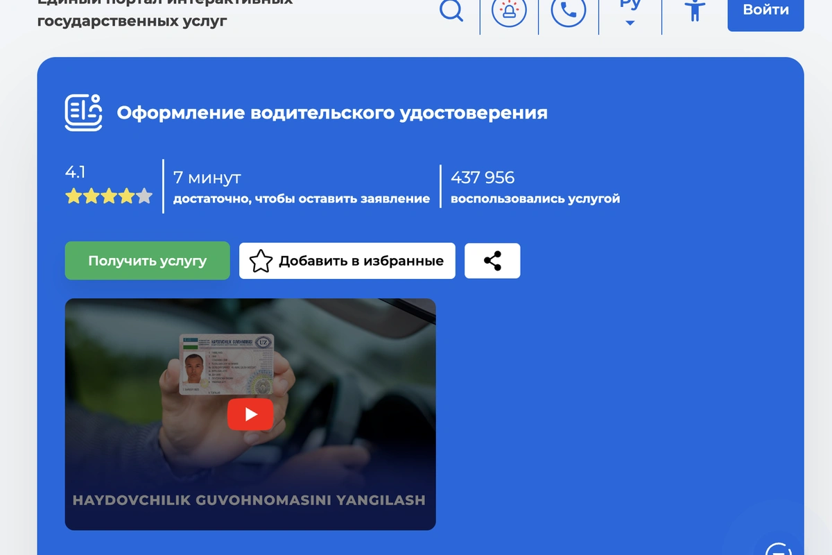 Водительские права в Узбекистане теперь можно восстановить онлайн