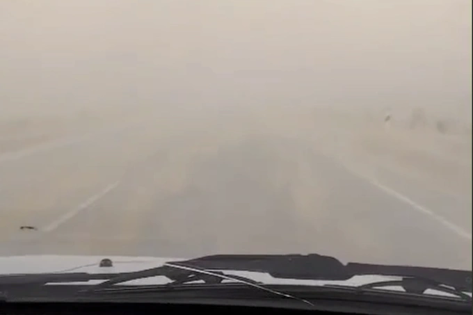 Пыльная буря в Бухарской области вечером 20 февраля.