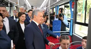 Читать далее »Фото: Президент Узбекистана проехал в электробусе по новой выделенной линии (BRT) на ул. Шота Руставели
