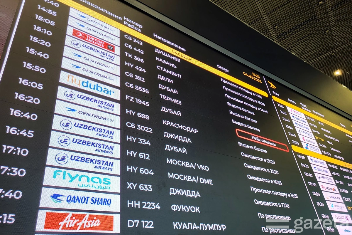 Табло прибывающих рейсов в аэропорту Ташкента 4 марта 2025 года.