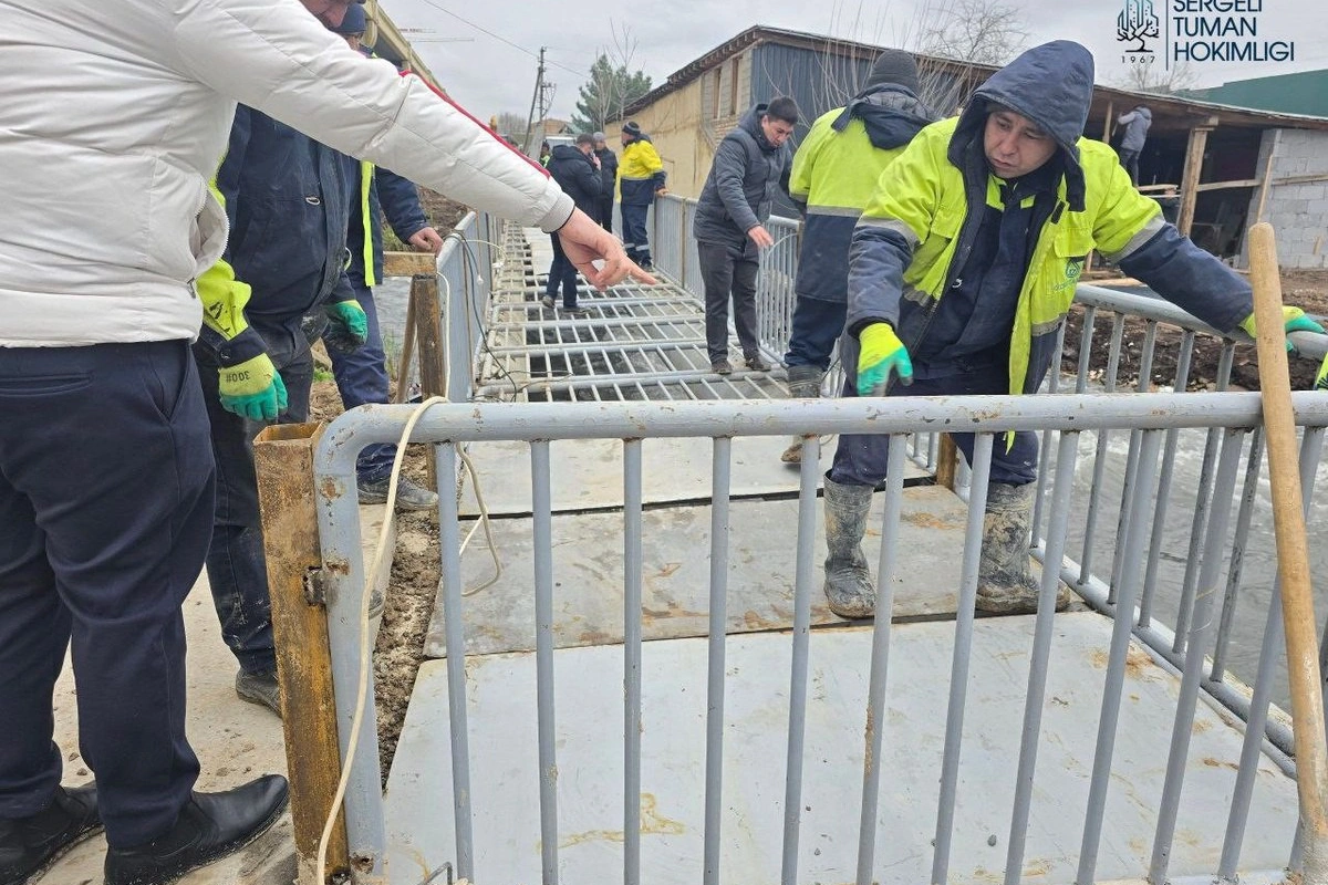Мост, за сутки сооружённый над трубами, по которым дети ходили в школу в Сергелийском районе Ташкента.