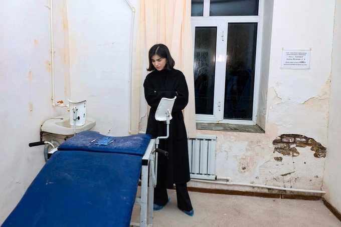 Саида Мирзиёева во время посещения поликлиники в отдалённом селе в Ургуте, 18 декабря 2025 года.