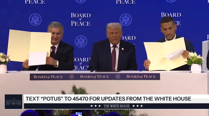 Президент Узбекистана Шавкат Мирзиёев 22 января в Давосе подписал устав Совета мира, созданного по инициативе президента США Дональда Трампа. Трансляция церемонии ведётся на YouTube-канале Белого дома.