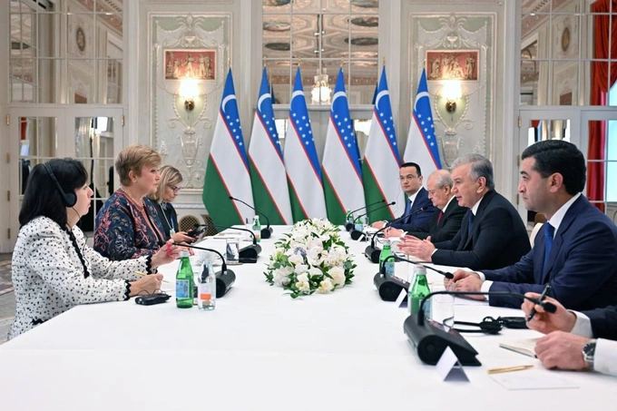 «В ходе диалога мы обсудили процессы экономического роста. Узбекистан демонстрирует стремительное развитие с темпом роста 6,8%, тогда как мировая экономика растёт лишь на 3,1%. Это очень большое достижение», — заявила она (цитата в переводе телеканала «Узбекистан 24»).