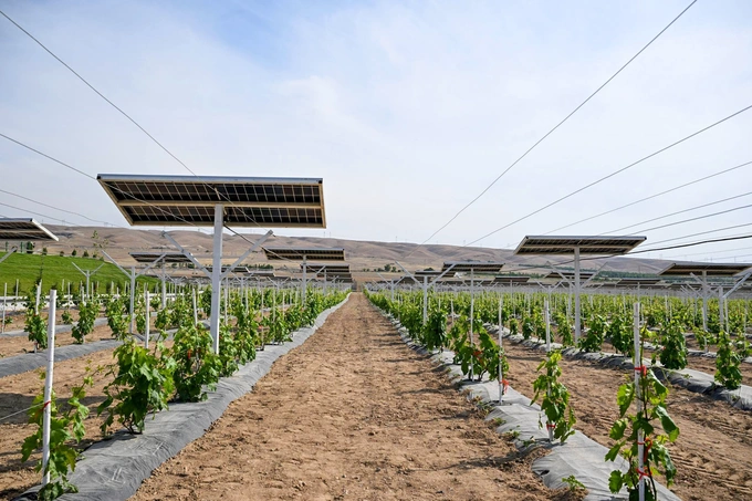 Президент в сельскохозяйственном комплексе в Кувинском районе, где внедрена технология агровольтаики.