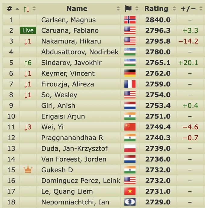 В шестом туре 4 апреля он сыграет чёрными против Вэй И.