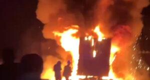 На трассе в Ташкентской области загорелся грузовик. Видео