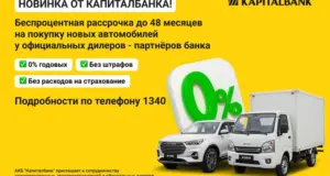 АКБ «Капиталбанк» запустил беспроцентную рассрочку на покупку новых автомобилей для самозанятых и ИП