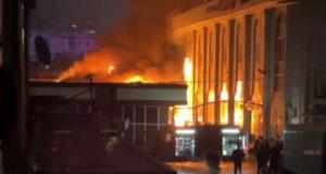 Базары горят не только в столице. В Зарафшане произошел пожар на рынке «Поле чудес». Видео